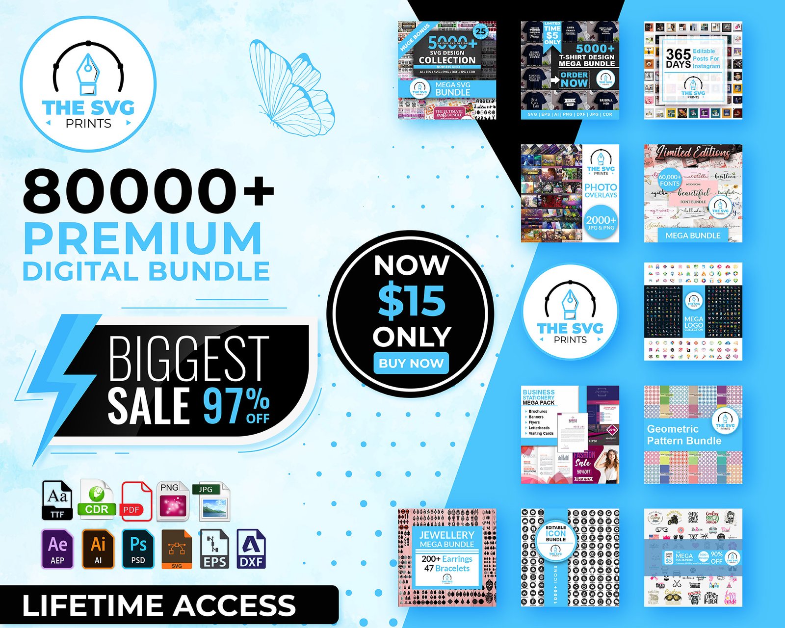 Are you ready to take your digital creations to the next level? Introducing our all-inclusive 80,000 Premium Digital Mega Bundle, a treasure trove of creative resources that will ignite your imagination and supercharge your projects. With an unparalleled variety of over 80,000 meticulously crafted digital assets, this bundle is a must-have for artists, designers, crafters, and entrepreneurs alike.