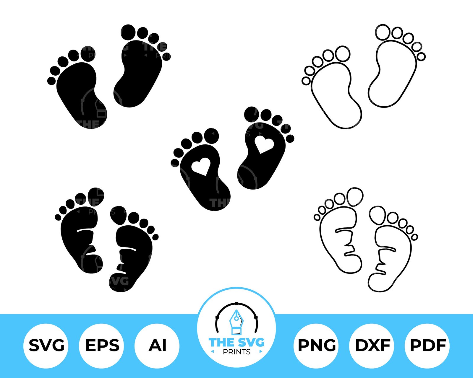 Baby Feet SVG Bundle – 5 Sets, Baby Footprint SVG, Baby Feet Line Art, Baby Footprint Silhouette, Baby Foot Impressions, Baby Feet Cut File