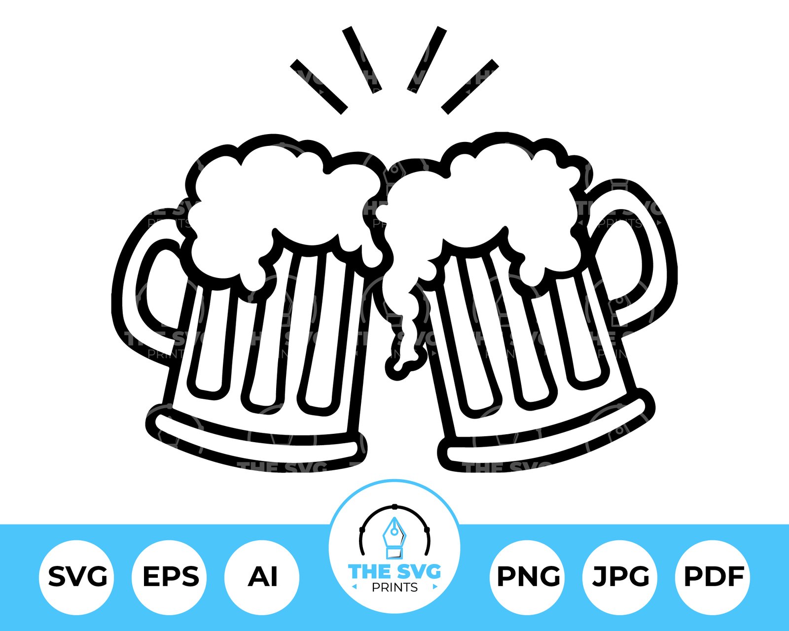 Celebrate the joy of friendship, laughter, and good times with our Beer Mugs Cheer SVG! Featuring two clinking beer mugs, this cheerful design is perfect for adding a fun and festive touch to any occasion.