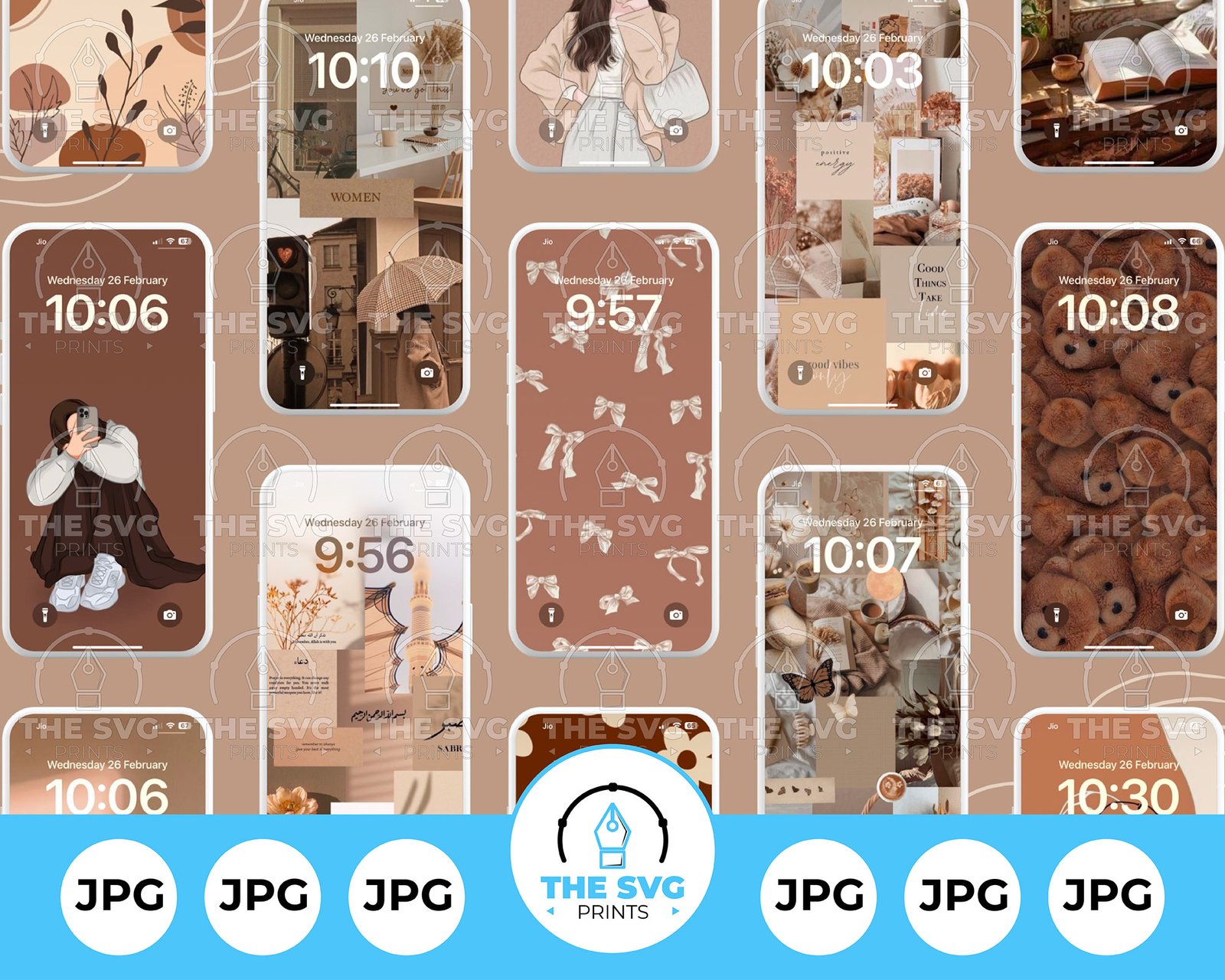 Brown Aesthetic Wallpaper JPG for iPhone, Set of 18, Cozy Neutral Backgrounds, Warm Earthy Tones, Minimalist Lock Screen, Instant Download