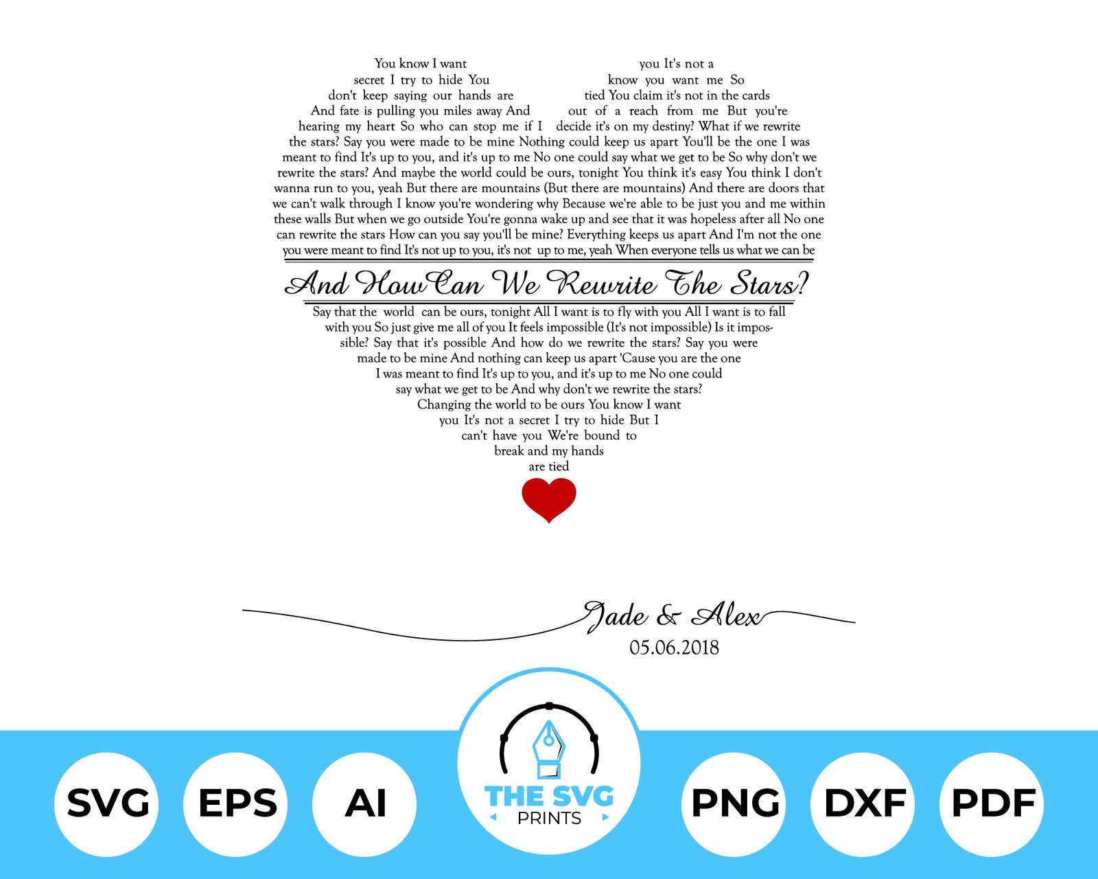 Custom Heart Shaped Personalized Lyrics, Gift For Him – Her, Any Wedding Song Lyrics In Heart Shape