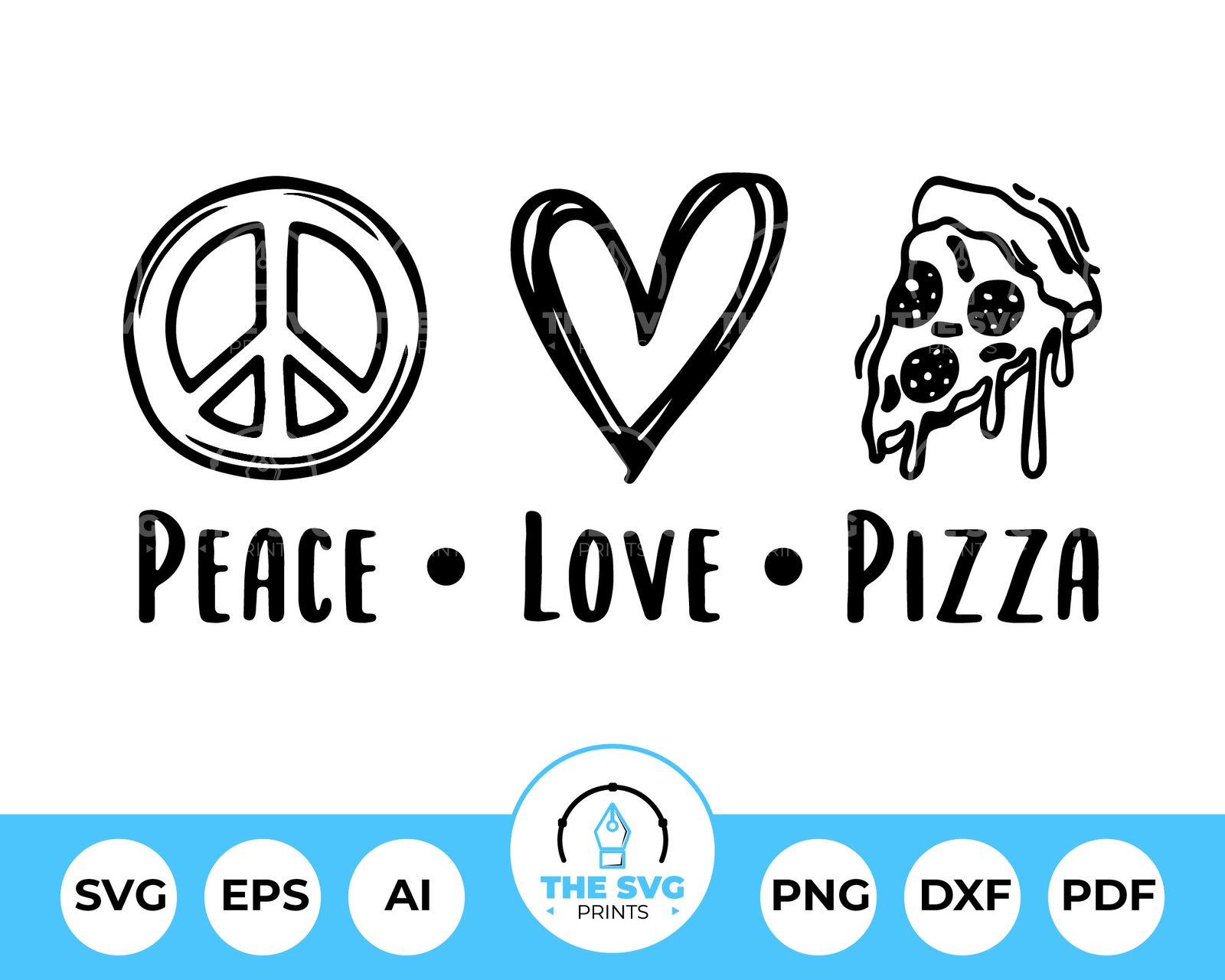 Peace Love Pizza SVG – Perfect for crafting unique t-shirts, stickers, or kitchen decor, this SVG is a must-have for anyone who loves to spread positivity and share their love for the best food on earth!