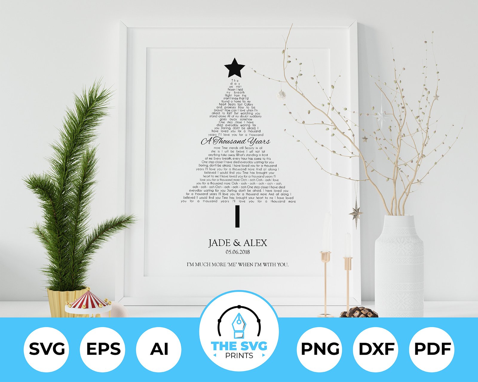 Make this holiday season extra special with our enchanting “Personalized Christmas Tree SVG.” This unique SVG file allows you to customize your Christmas tree with your favorite Christmas Carols, Song Lyrics, Handwritten Poems, First Dance Songs, creating a personalized and heartfelt wall decor for your home.