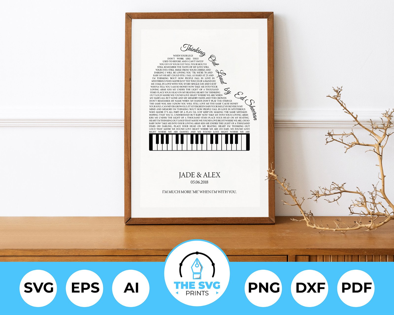 Personalized Grand Piano Shaped Lyrics, Custom Wall Decor SVG, Custom Poem SVG, Anniversary Gift, Valentines Day Gift for Couple