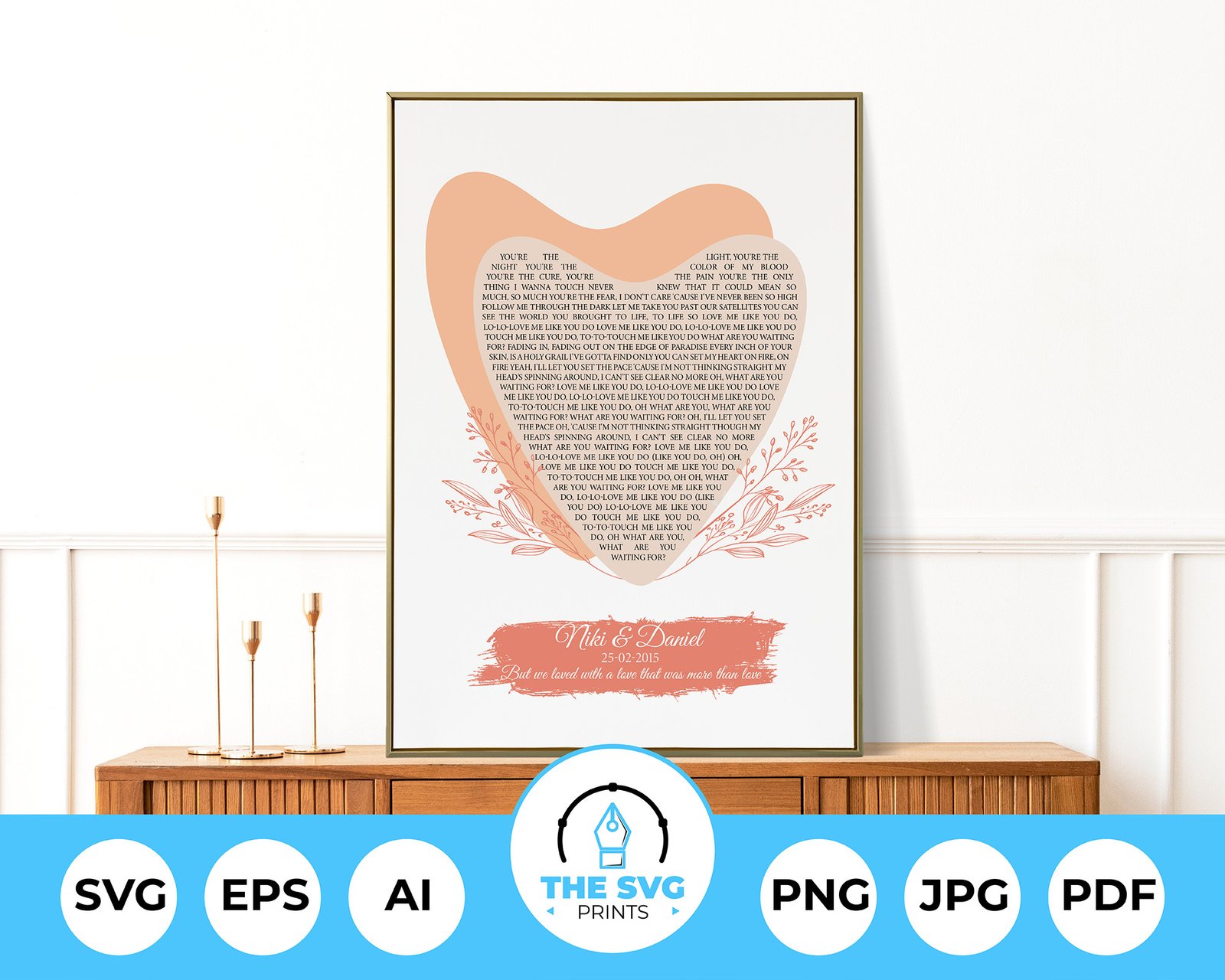 Transform your special words into a work of art with our Personalized Abstract Heart Shaped Lyrics SVG. Share your favorite lyrics, a meaningful quote, or even your wedding vows, and we’ll craft them into a beautiful abstract heart design.