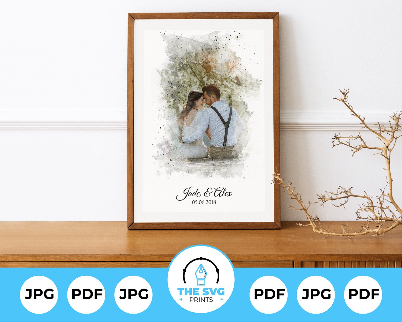 Transform your cherished photo into a stunning watercolor masterpiece, ideal for enhancing the ambiance of your home. Whether commemorating weddings, anniversaries, or expressing affection on Valentine’s Day, capture the essence of your love with this exquisite watercolor-style portrait.